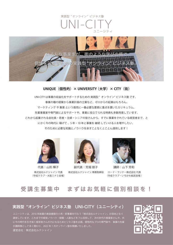 2022年2月よりスタートした、実践型”オンライン”ビジネス塾『UNIーCITY』にて、講師を担当することとなりました。